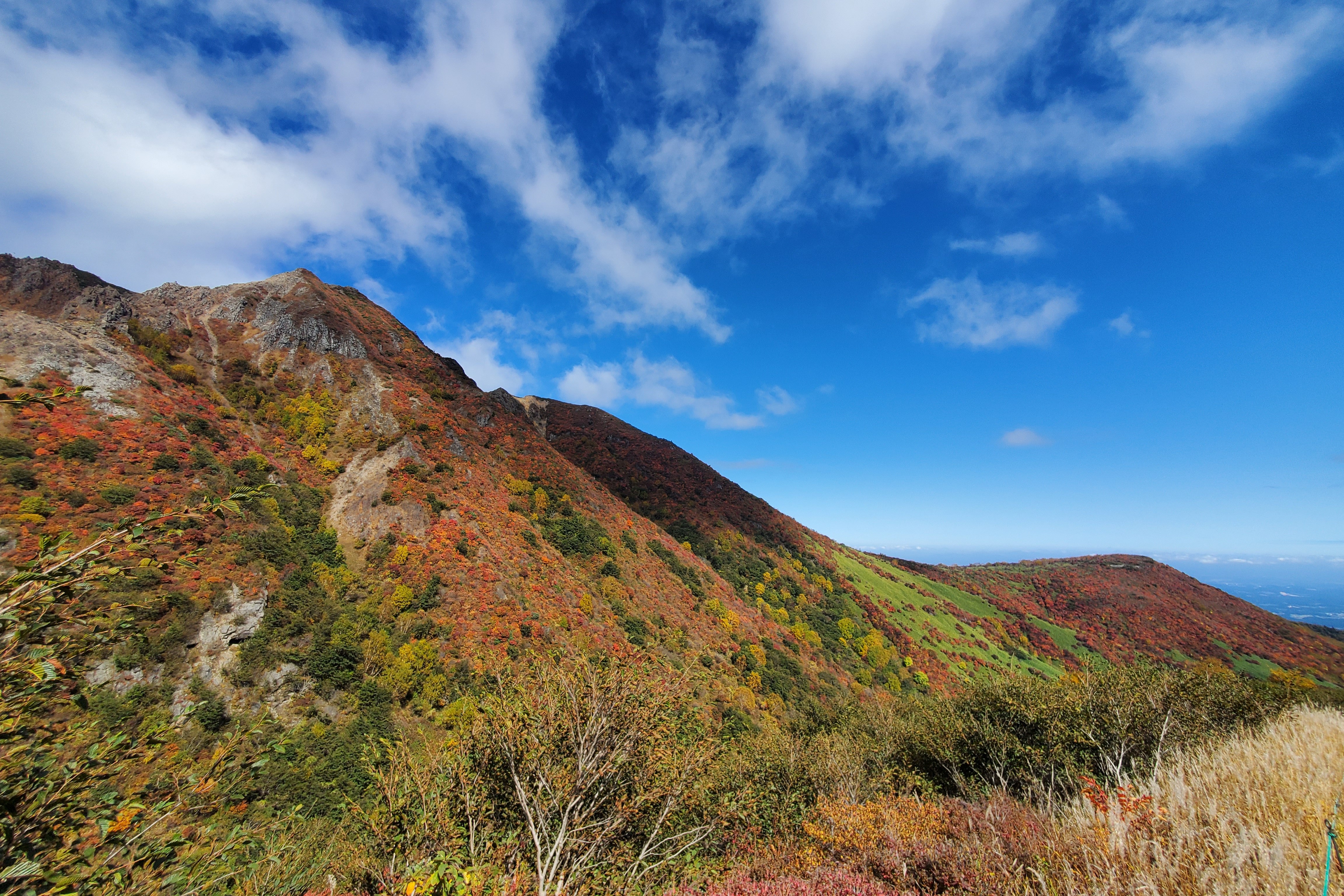 那須の紅葉は主峰、茶臼岳の裏側にある姥ヶ平周辺から始まり、少しずつ山を下りてきます。