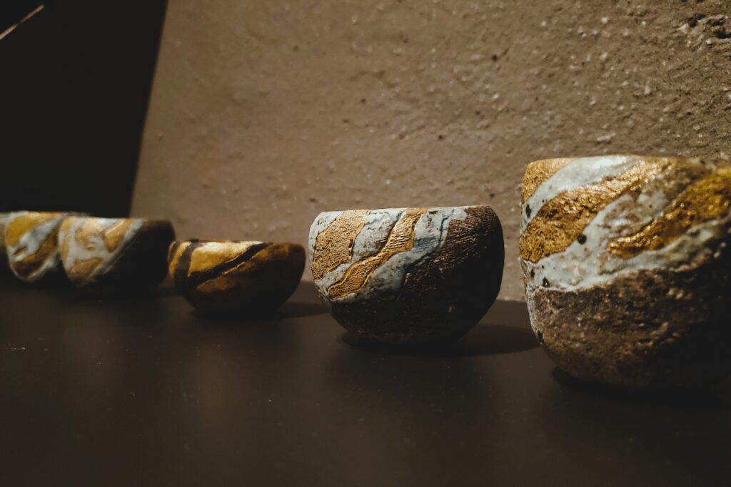 手びねりで土を積み重ね、焼けた肌を剥がし磨く独自の技法によって生み出される作品は、