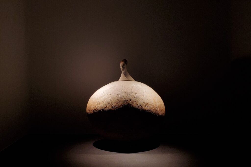前回の展示では、内と外の境目がなく、ひと続きになったベースの陶器に顔のオブジェを挿し、